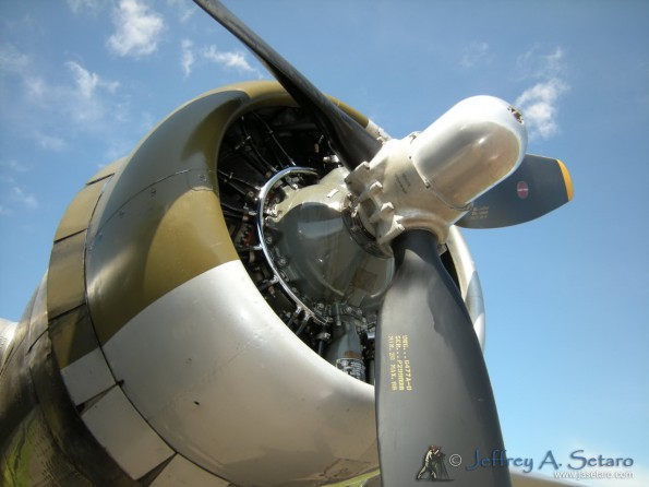 A close-up view of one of the Aluminum Overcast’s 1,200hp Wright R-1820-97 engines.