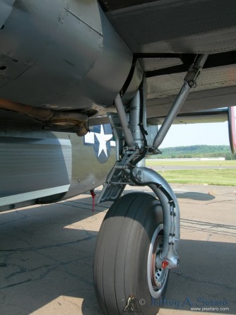 A close-up of one of the Witchcraft’s Liberator’s main landing gear.